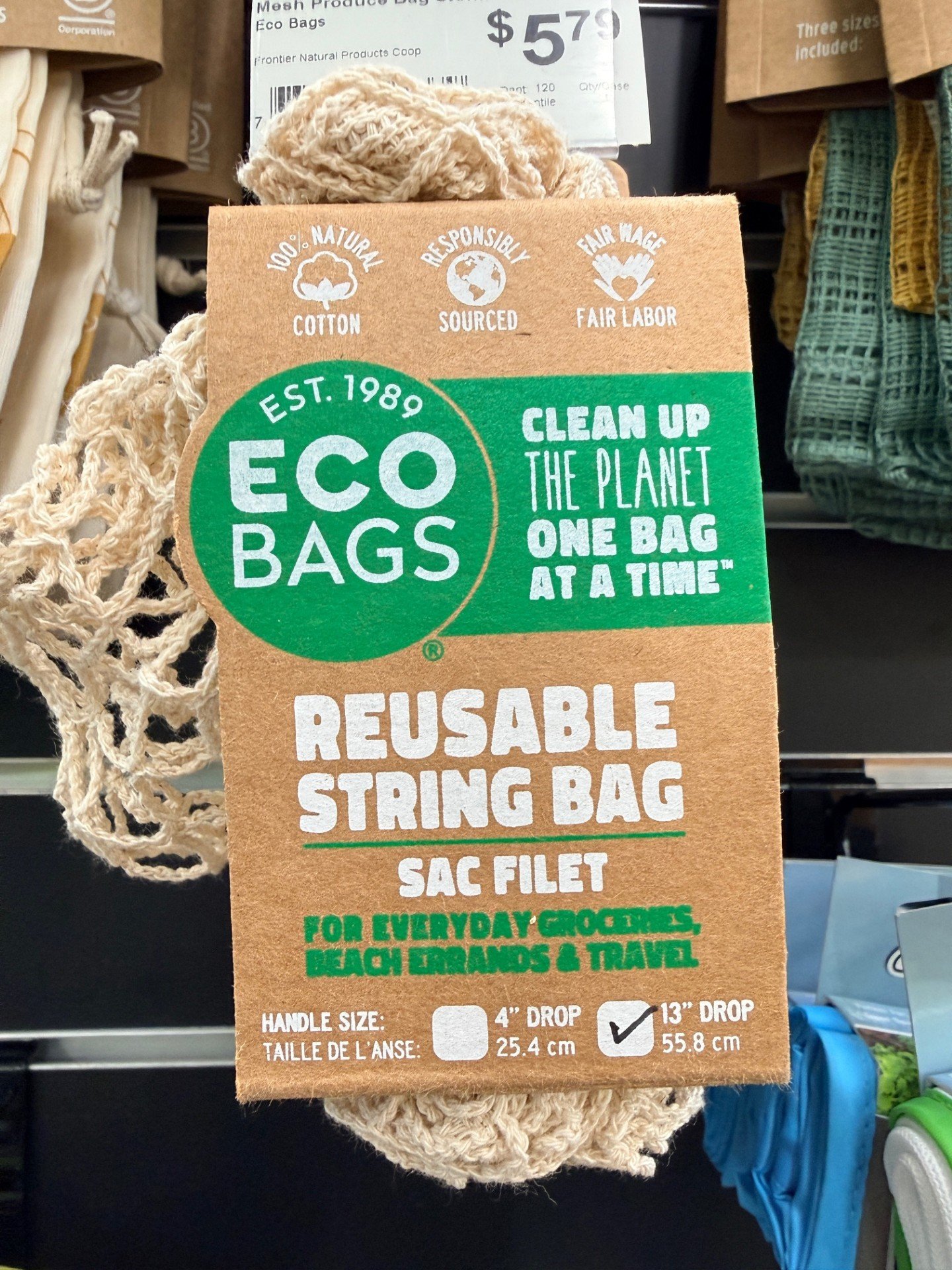 Use string bags again and again. Great for groceries, produce, errands, and travel